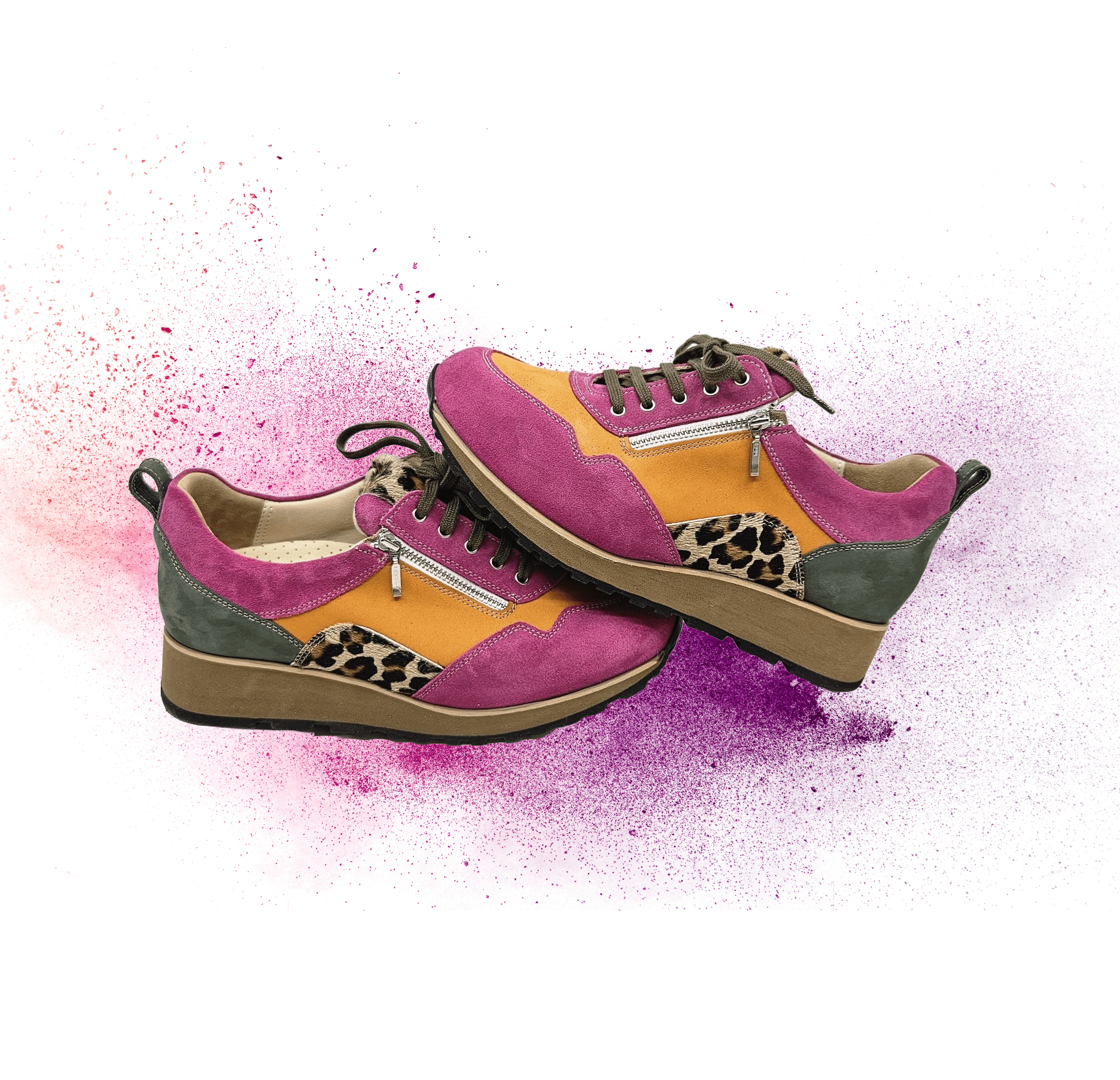 Des sneakers colorées et tendance qui prouvent que les chaussures orthopédiques peuvent être tendance et élégantes. Votre confort et votre style grâce à notre savoir-faire.