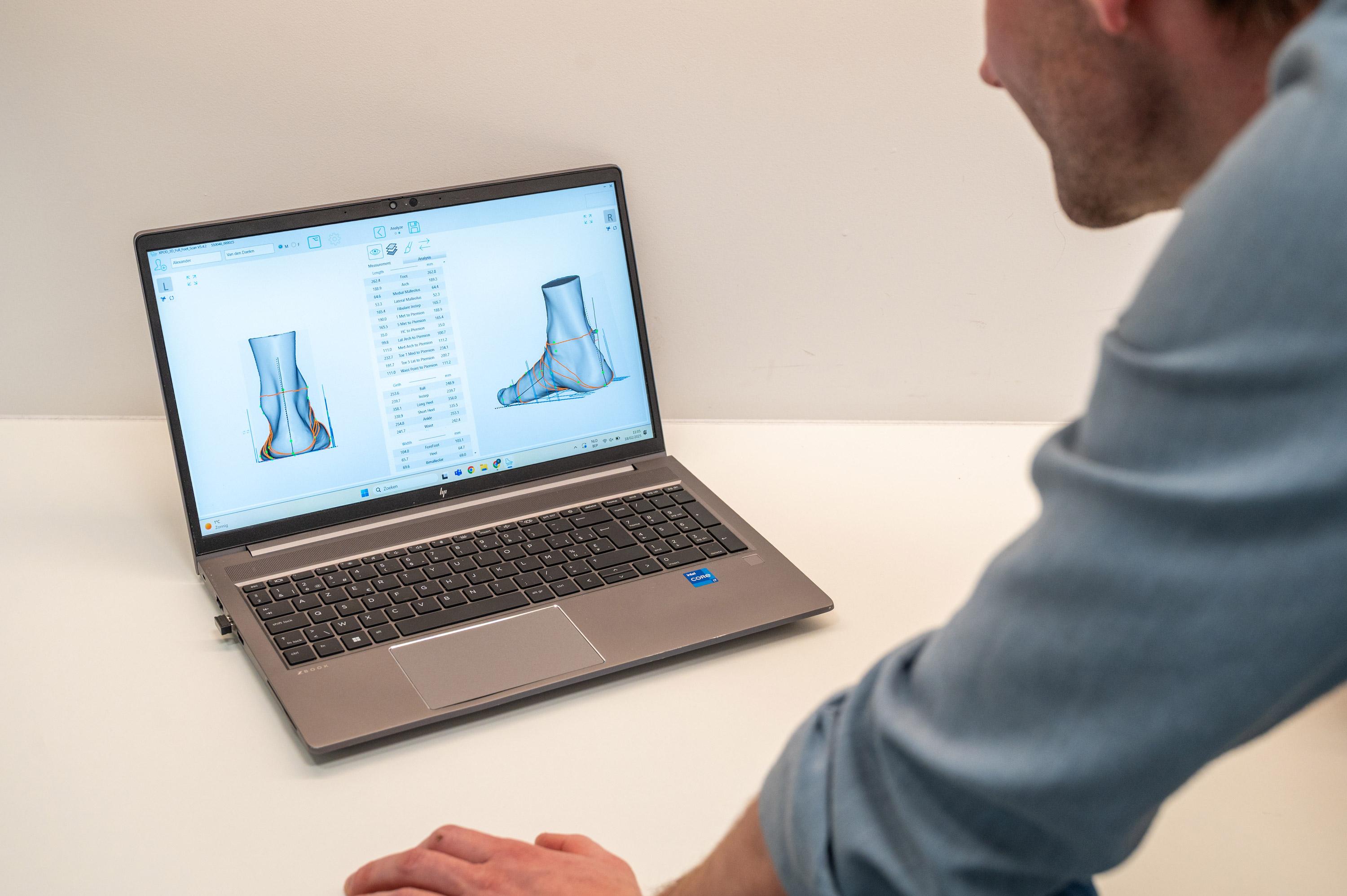 Met onze geavanceerde 3D-scantechnologie krijg je een haarscherp en gedetailleerd beeld van je voeten – tot op 0,01 mm nauwkeurig. Zo ben je zeker van de perfecte pasvorm!
